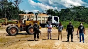 (Moyobamba, 7 de octubre de 2020). – La Fiscalía Especializada en Materia Ambiental de Moyobamba, en coordinación con otras autoridades, realizó una diligencia de constatación ante denuncias por extracción ilegal de material no metálico (arenilla), la cual resultó en la detención de nueve personas, además de la inmovilización de tres cargadores frontales y dos camiones, encontrados en diversas zonas visitadas del sector Tumba, provincia de Moyobamba.