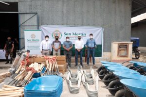 De esta manera, el Goresam, mediante la Oficina Regional de Seguridad y Defensa Nacional (Orsdena), entregó la misma cantidad de herramientas a cada municipalidad: 18 unidades de barretas de fierro hexagonal, 30 carretillas Bugui, 30 combas de metal, 20 hachas de acero inoxidable, 40 palanas tipo cuchara, 40 palanas de corte recto, 40 zapapicos. Los representantes de las municipalidades de Jepelacio, Yorongos y Awajún, agradecieron el donativo.
