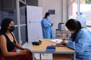 Estudiantes de la UCV y público en general de 12 años de edad a más, visitaron las instalaciones de la Universidad Cesar Vallejo de Moyobamba para poner el hombro y recibir la dosis correspondiente de la vacuna contra la COVID-19.