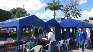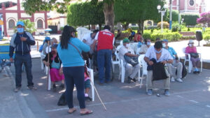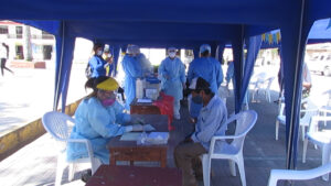 Moyobamba. en conmemoración del día del adulto mayor, la dirección regional de inclusión e igualdad de oportunidades del GORESAM realizo una campaña para brindar salud integral a los adultos mayores que realizaban el cobro de sus beneficios, en el Banco de la Nación de Moyobamba, ellos fueron vacunados contra la influenza y neumococo y pasaron por pruebas rápidas de descarte de COVID 19.