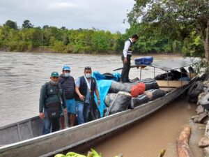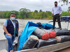Hasta el lugar se constituyó el fiscal provincial, Héctor Jesús Vera Santamaría, quien constató que, Zenón Chujutalli Sajami, se encontraba transportando un total de 1260 kilos de carbón distribuidos en veintiocho sacos, a bordo de un bote con motor fuera de borda.